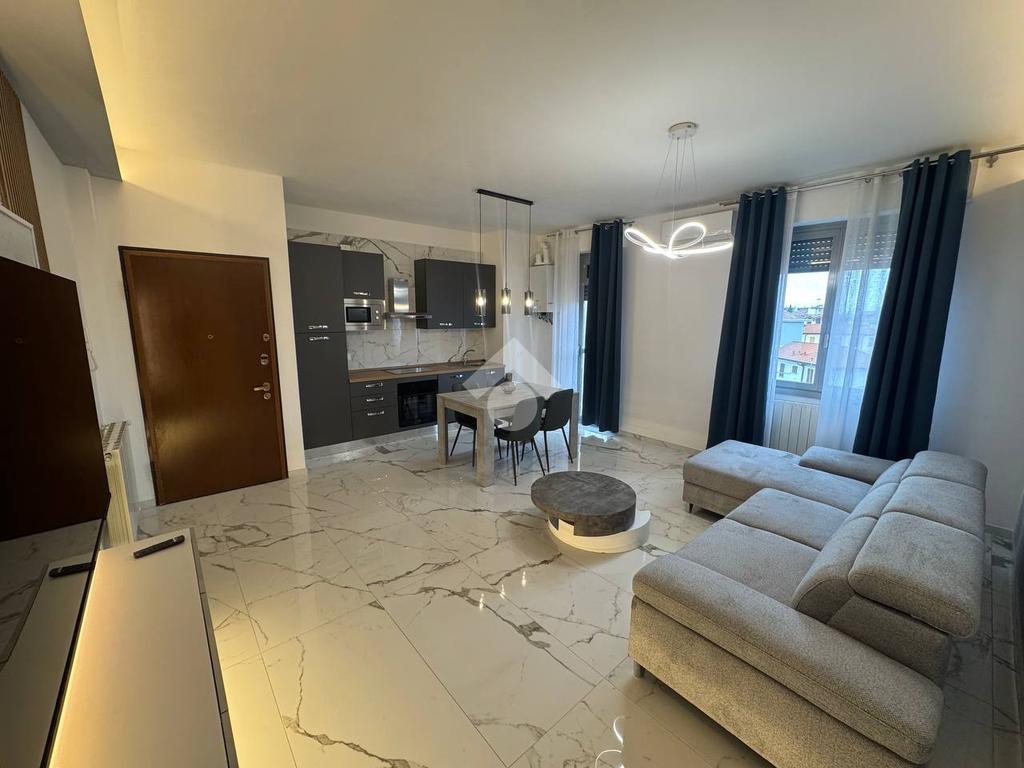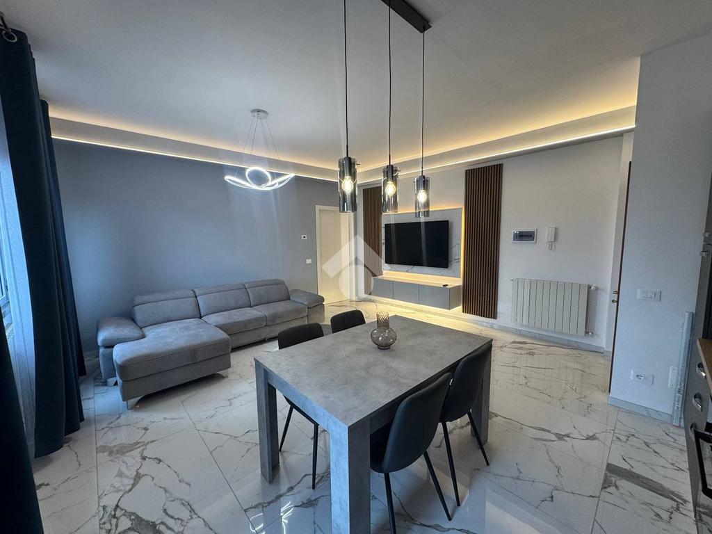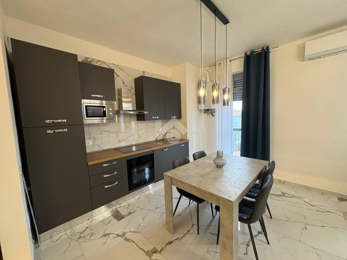 L'immobile, ristrutturato nel 2025, offre un ambiente moderno e funzionale. La zona giorno è composta da un ampio soggiorno e una cucina a vista con sfogo esterno, ripostiglio, bagno finestrato con doccia; mentre la zona notte include due camere da letto entrambe matrimoniali, di cui una con balcone.
